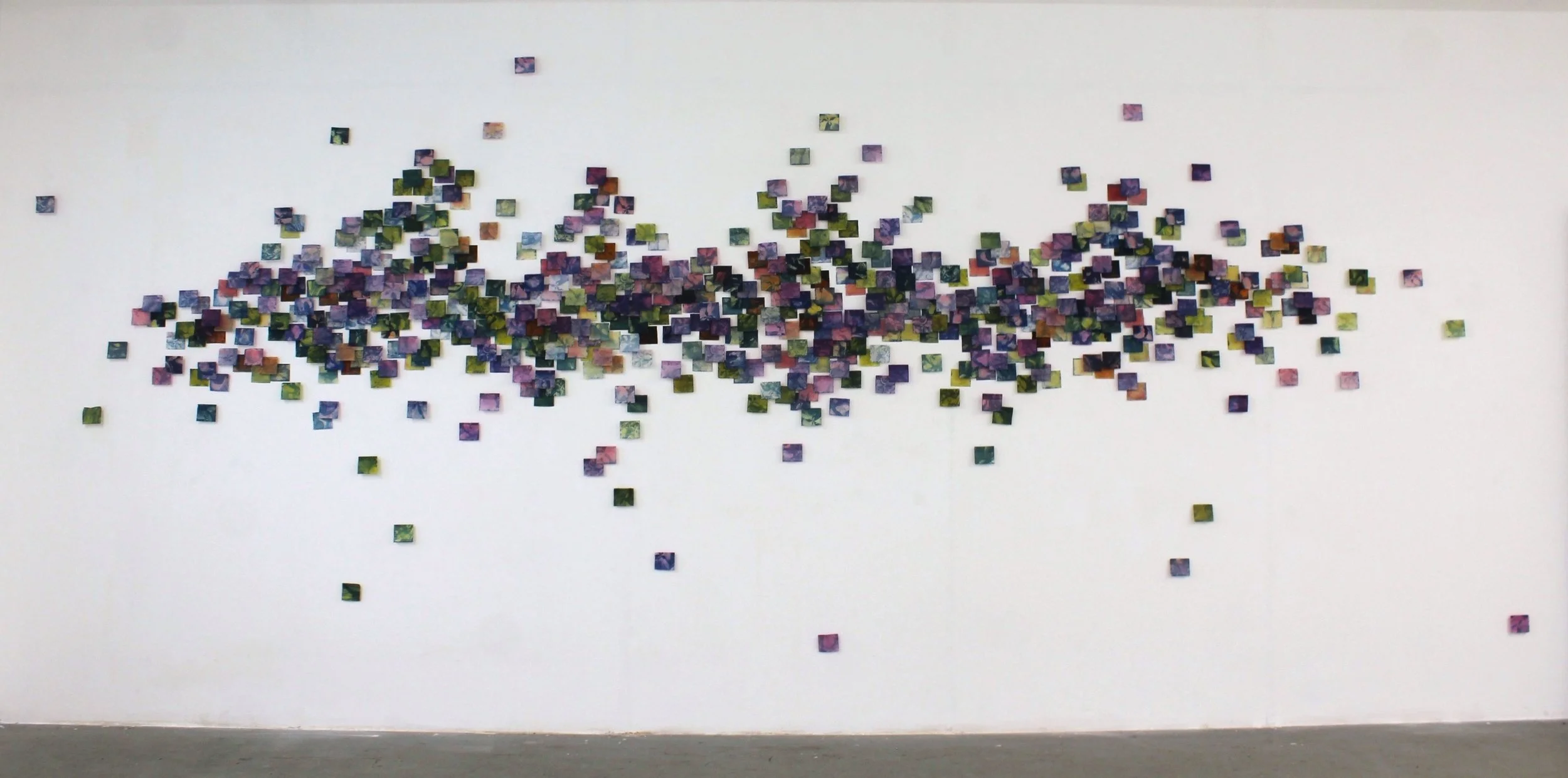 I started to think about the tea bag and how it, the actual tea bag, is quite ductile but quite resilient and delicate as well. There was a moment, I think it was watching people who would be drinking all sorts of different teas, not just regular tea, maybe chamomile or ginger tea, and the colours which emerged from that. I thought I could do something artistic with those tea bags.